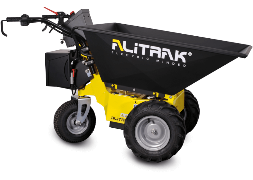 De krachtige Alitrak dumper op accu, de DT-300E heeft een laadvermogen tot 300 kg